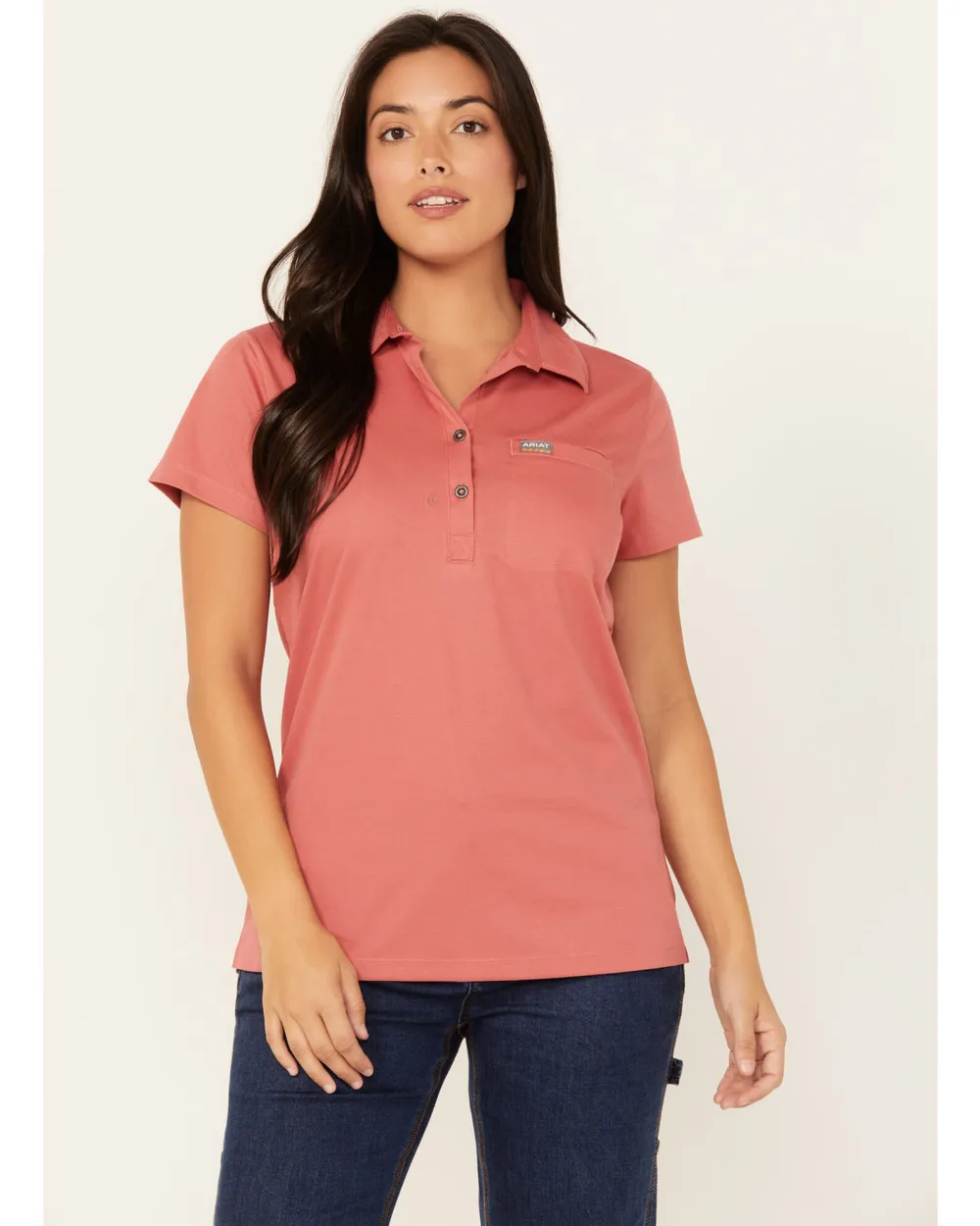 Ariat logo tag on left chest